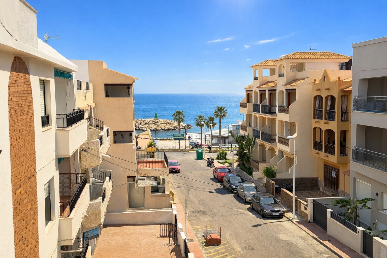 A tan solo 200 metros del mar, lo que permite llegar a la playa en pocos minutos a pie, y a solo 150 metros del puerto de Villaricos, donde se puede disfrutar de su ambiente, restaurantes, comercios y servicios.